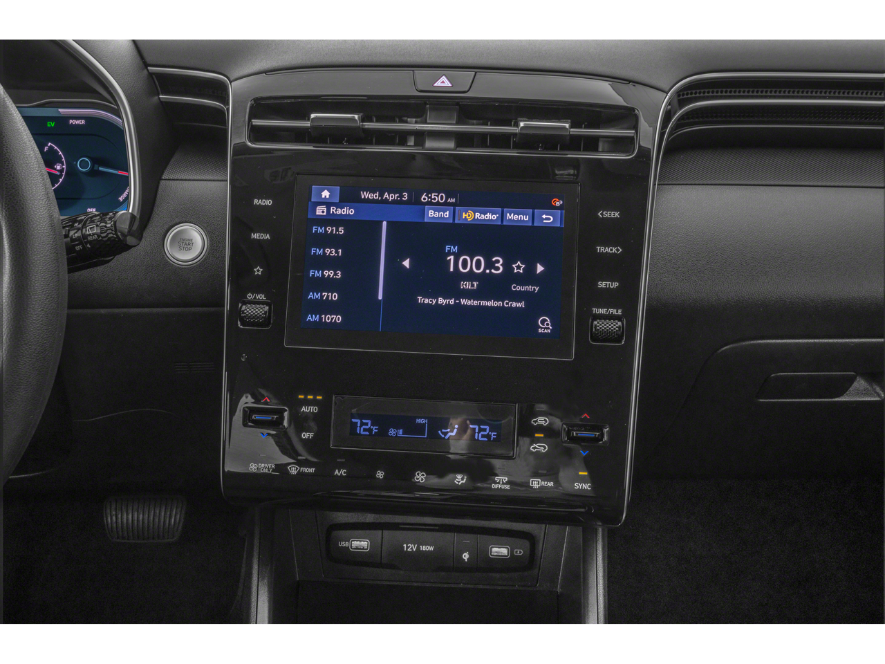 - Radio: Bose Premium w/AM/FM/HD Audio System -inc: 10.25" color touchscreen w/onboard navigation and traffic flow including incident data via HD Radio (HERE), digital 8-channel amp (w/custom equalization, digital signal processing, and dynamic speed compensation) and 8 speakers (1 twiddler on center of instrument panel, 2 tweeters, 2 front door, 2 rear door, 1 woofer on rear quarter panel), SiriusXM satellite radio (3-month trial subscription), BlueLink+ connected car, Apple CarPlay and Android Auto integration, map and multimedia software OTA update capability and USB connectivity